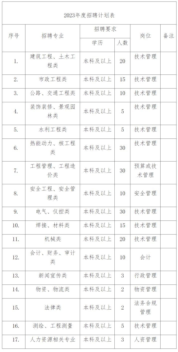 中国能源建设集团安徽电力建设第二工程有限公司(以下简称“公司”)成立于1952年,坐落于安徽省会合肥,是拥有电力工程施工总承包特级、工程设计电力行业甲级、建筑工程施工总承包壹级、市政公用工程施工总承包壹级资质、民用核安全设备安装许可证、对外承包工程资格等30余项的国有大型施工企业。公司主营业务为能源建设和城市建设两大领域。以工程建设为中心,不断拓展新业务,向产业链的上下游延伸,打造成为一流投资、建设、运营综合服务商,业务遍布国内30个省市自治区、香港特区以及海外10多个国家。公司先后荣获国家科学技术进步奖特等奖、国家重大技术装备成果特等奖、中国建筑工程鲁班奖、国家优质工程金奖、“全国重合同守信用企业”、国家能源局电力建设施工企业安全生产标准化一级企业称号等300余项国家及省部级荣誉。公司坚持“以人为本,追求卓越”的核心价值观,高度重视员工职业发展,推行启航计划和加速度计划,拥有健全的人才培养体系和多通道晋升空间。提供具有竞争力的薪酬福利,多年来员工人均收入持续增长。优秀的员工是企业腾飞的动力源泉,也是企业持续发展的保障,我们热切的期待着您的加入,与我们携手共创美好未来。1、专业对口或相近,全日制统招大学本科及以上学历的优秀应届毕业生。2、身体健康,责任心强,乐观向上,具有良好的团队意识,吃苦耐劳,诚实守信,能适应工程项目间流动工作。4、经综合面试(笔试)合格录用者,先签订三方就业协议,取得毕业证及学位证后正式签订劳动合同。1、校园招聘:现场应聘者简历筛选后,直接通知面试或笔试。2、网络招聘:应聘人员将简历、就业推荐表、在校成绩单以文件的形式投到邮箱:623472498@qq.com。(文件夹命名格式:姓名 学校 专业)。我们将对简历进行筛选并通知面试。1、完备的培训培养体系和职业生涯规划,选配职业导师,助力职业发展。2、应聘人员录用后有三个月的试用期,享受试用期待遇,试用期考核合格后按照公司薪酬管理制度享受同岗位待遇。3、员工享受基本养老保险、医疗保险、工伤保险、生育保险、失业保险、住房公积金、企业年金、安家费、商业意外保险、交通补贴、过年过节费及电话补贴等福利待遇。魏女士 0551-63878765 18655159823许先生 0551-63878840 15385899191
